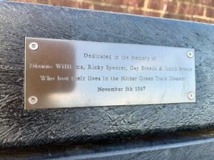 ‘Dedicated to the memory of Dianne Williams, Ricky Spencer, Gay Breeds & Judith Breeds who lost their lives in the Hither Green Train Disaster November 5th 1967’